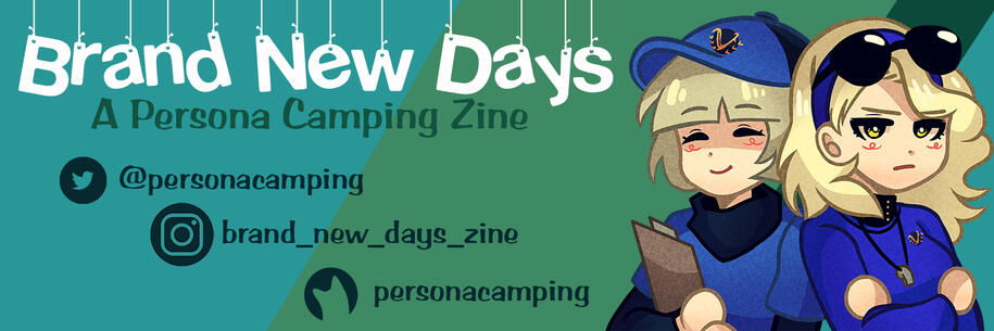 Brand New Days is a non-profit Persona fanzine. No previous experience will be required as this zine is designed to be accessible and give experience. In this project, contributors can write or draw about their favorite persona users going on a camping trip! This AU consists of all persona users as their regular student selves and the velvet attendants as camp counselors. As for who runs the zine, we have a couple of first time mods, but also ones who are experienced. All who are aiming to make this zine a fun and positive experience! As of now, we are accepting all applicants. We hope you can support us through this project till the very end of it!